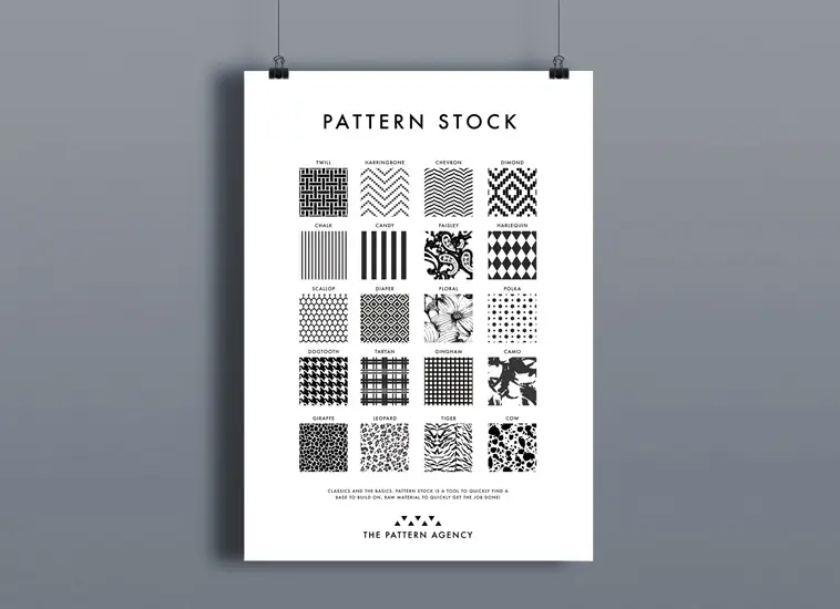 Pattern Stock is like a raw material warehouse for designers and buyers; over 200 classic patterns in black and white, ready for production, just adapt color, scale to fit your product and material.