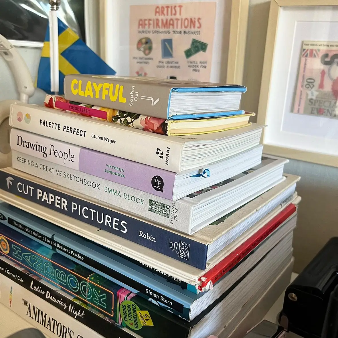 Colour inspiration can come from many things—a combination of objects in my studio, books, or Pinterest. I have a book I love and use all the time called “Palette Perfect” by Lauren Wager. She also has an Instagram account to follow.